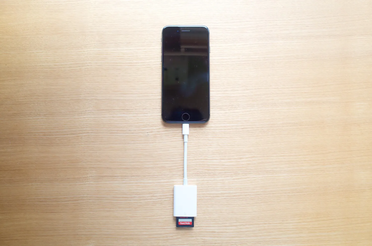 iPhone8の色味と比較するとこんな感じ。SDカードリーダーの方が若干明るい。色味が異なるとはいえ、常に接続した状態で使用するものではないので、違いはあまり気にならない。