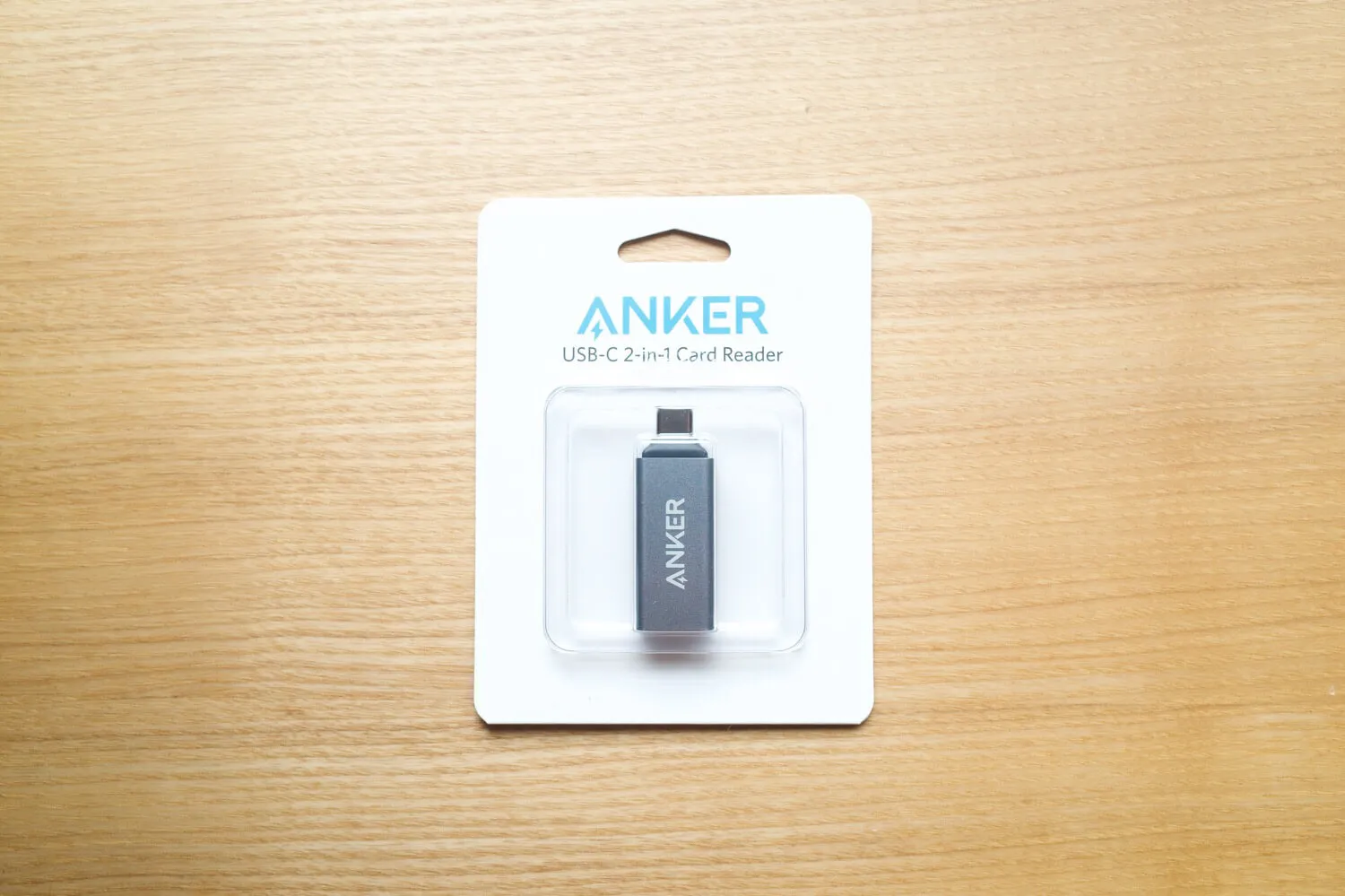 今回購入したのはAnkerから最近発売されたばかりの「ANKER USB-C 2-in-1 Card Reader」というSDカードリーダー。「2-in-1」という名前が示す通り、MicroSDとSDの2種類の形式に対応している。