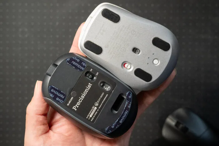 ほとんどのマウスは切り替えボタンが本体の底面についている。そのため、切り替えのたびにマウスを持ち上げ、ボタンを押す必要があった。