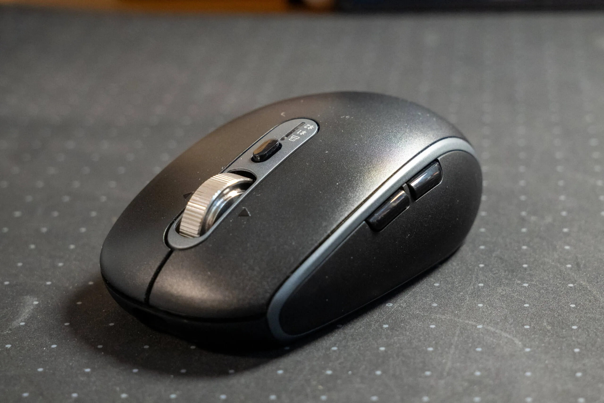 このマウスの最大のポイントは、接続デバイスの切り替えボタンが本体の上部にあること。