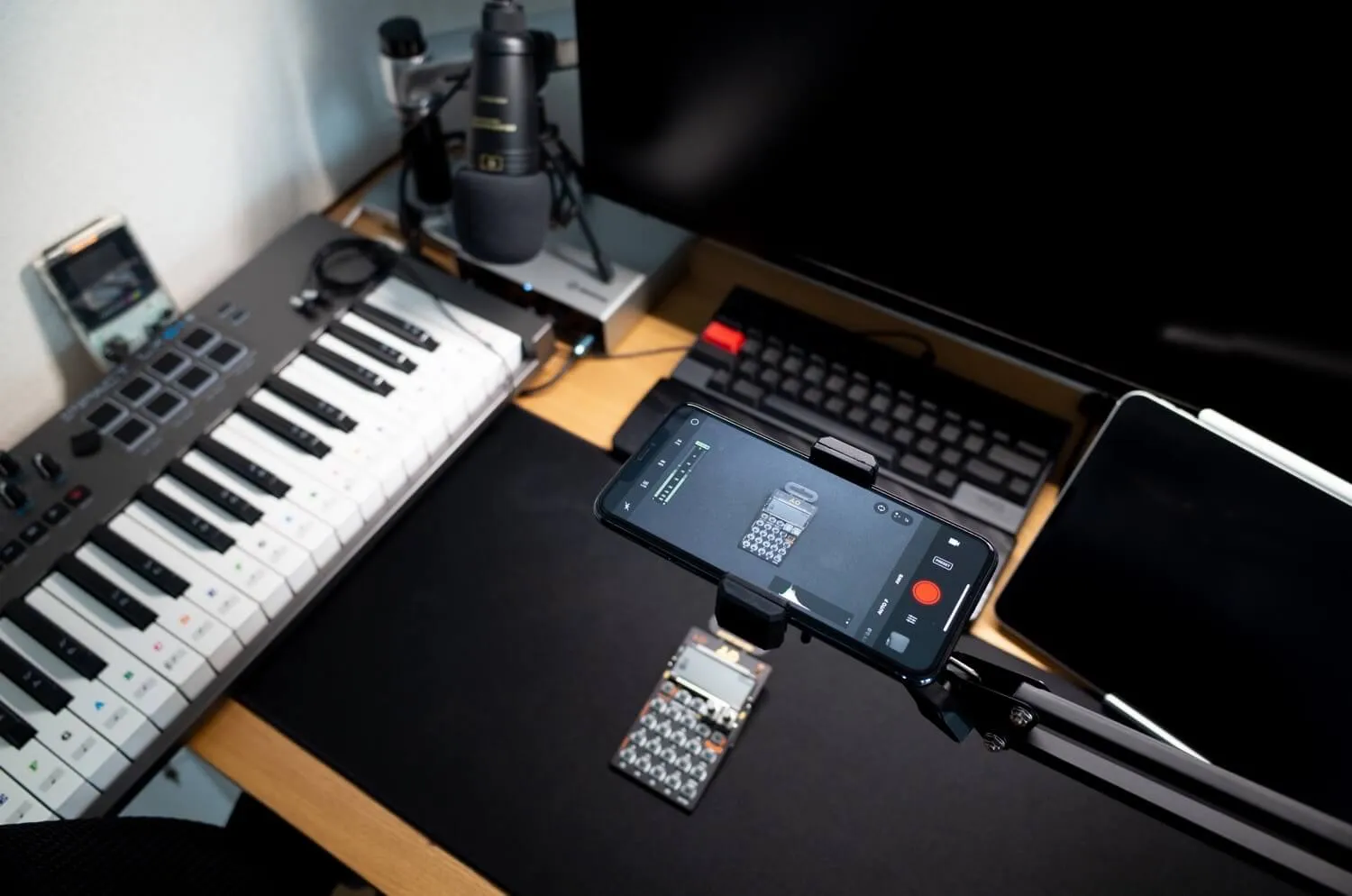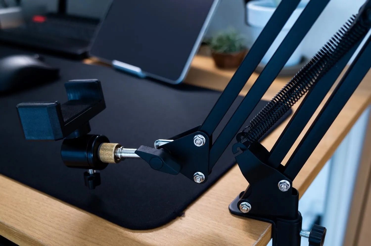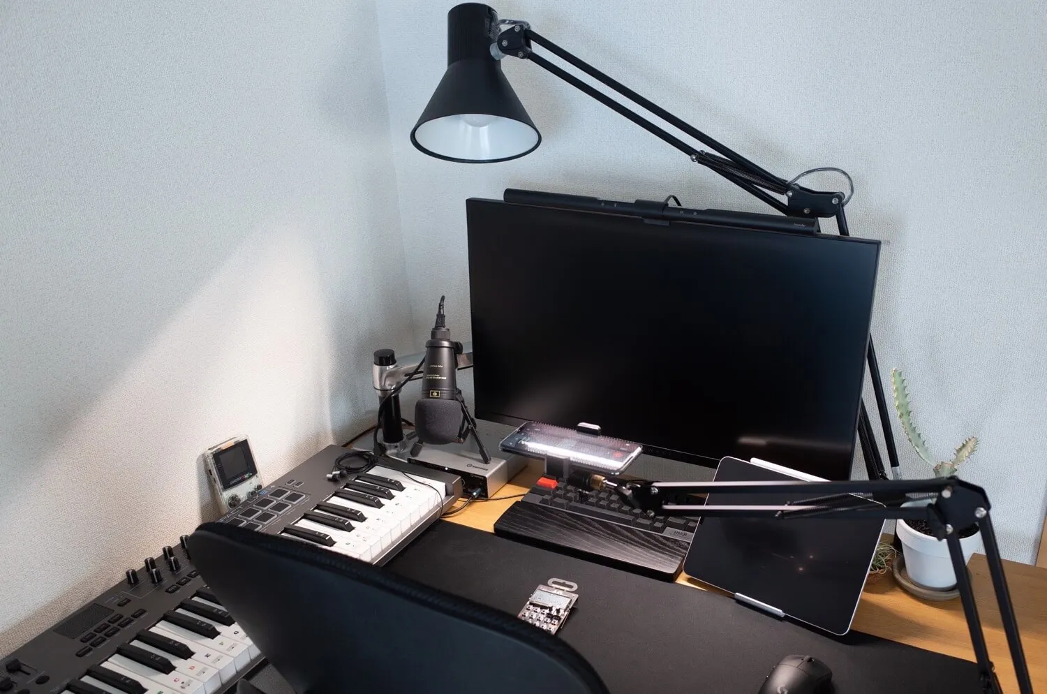 そこで、なるべく専用の機材を用いず、安価に実現したいと考えた。調べると、YoutubeでPC用のマイクマイクスタンドで俯瞰撮影の環境を構築している方がおり、ボクも挑戦してみることにした。