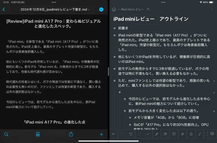 ぼくは他にもいくつかiPadを所有しているが、「iPad mini」の稼働率が圧倒的に高い。前モデルである「iPad mini 6」の発売からすでに3年が経過しており、性能面で時代遅れ感は否めなかった。