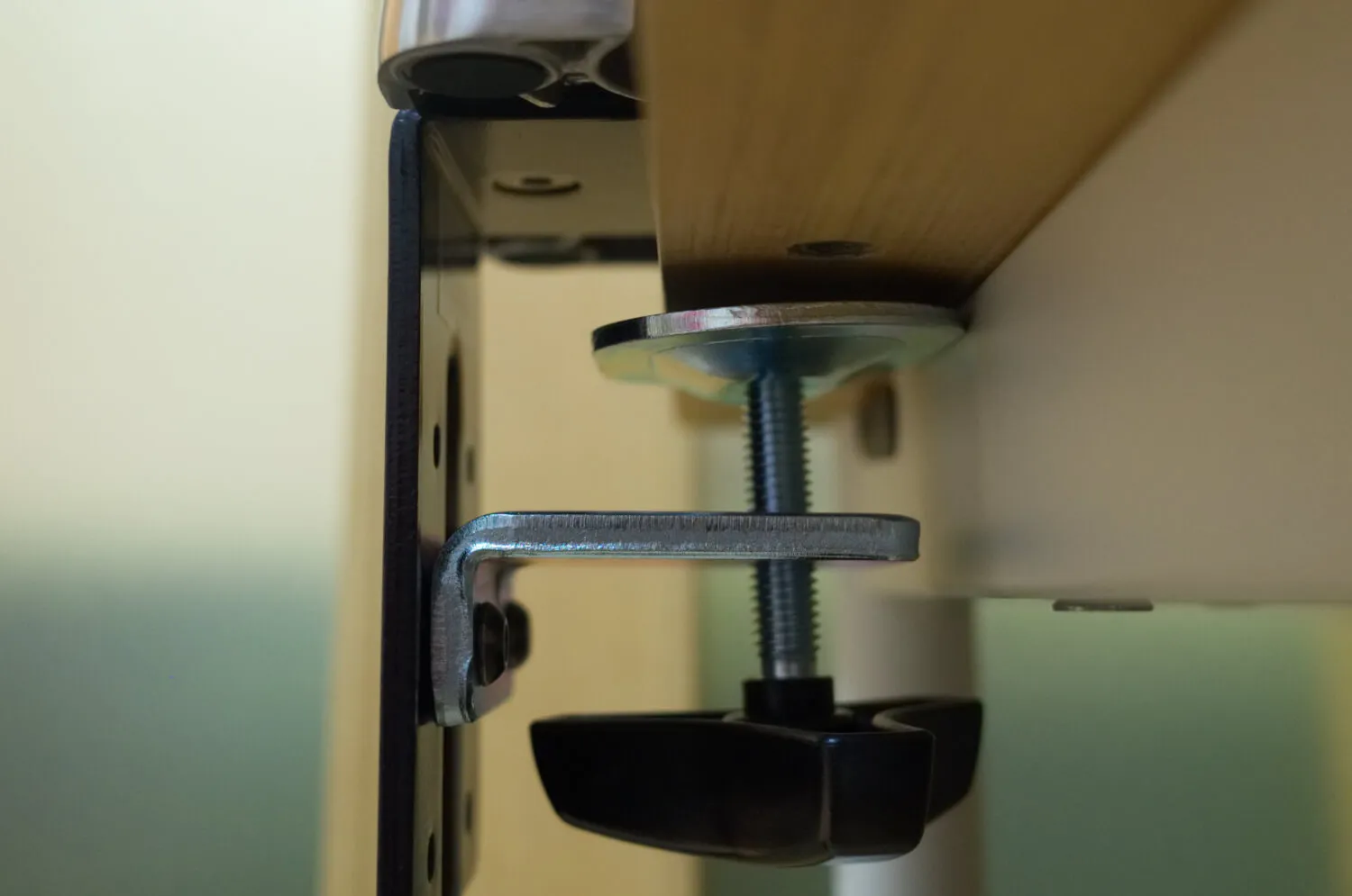 ちなみに、設置方法はクランプ式/グロメット式の2種類に対応。 今回は、デスクの厚みの関係から、天板に穴を開けるグロメット式を選択した。天板の形状や厚みが不安な人は、グロメット式を選択すれば間違いない。