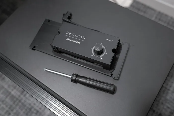 そんな「Re:CLEAN」の防湿庫だが、先日、ふと湿度計をみたところ、庫内の湿度が高いことに気がついた。電源ランプも正常に点灯しているため電源は接続されているはずだが、なぜか庫内の湿度が高い。