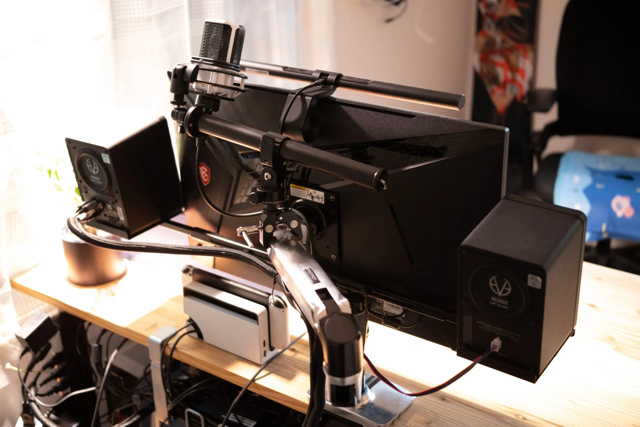 デスク上から不要なモノをなくしたい。極限までスッキリさせたい。でもスピーカーは外せない。