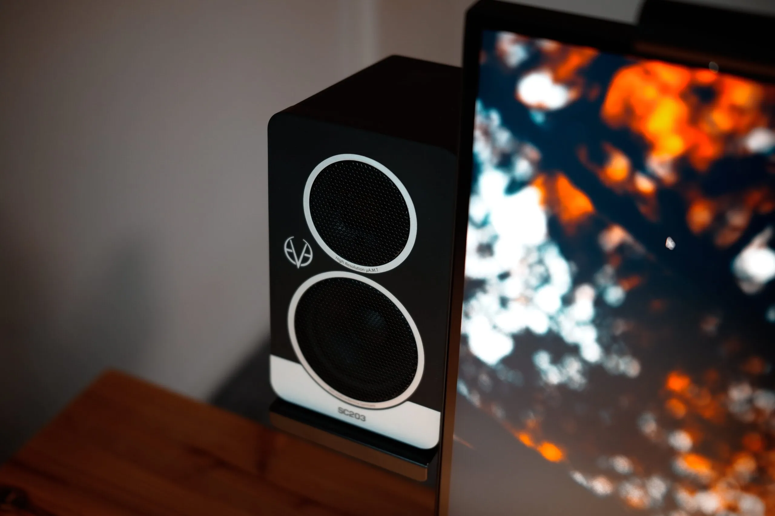 スピーカーを乗せる台の部分は薄く華奢に見えるが見た目以上に堅牢。大型のスピーカーは設置できないものの、「SC203」のような小型なモニタースピーカーがギリギリ乗せられる性能だ。