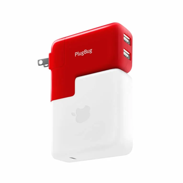 「PlugBug Duo」はMacbookPro用の充電器にUSBポートを2つ追加し、かつ海外のコンセント規格のプラグに換装させることができる便利アイテム。