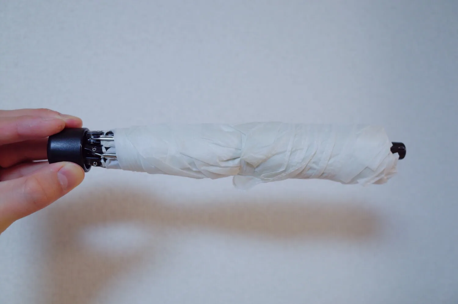 「トラベルアンブレラ」の本体重量は、スマホより圧倒的に軽い86グラムと異常ともいえる軽さ。